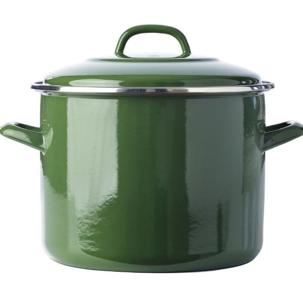 This large stockpot is perfect for preparing large batches of soup, stew, or stock. Its enameled steel design ensures durability,